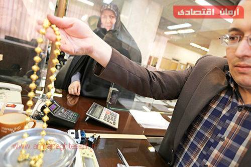 هر چه به ظهر نزدیک‌تر می‌شویم بانک، شلوغ‌تر می‌شود اما روبه‌روی باجه‌های ارزیابی طلا، از همه‌ قسمت‌های دیگر، شلوغ‌تر است. غفار نواز ـ یکی از چند ارزیاب طلای بانک کارگشایی ـ بدون ‌توجه به شلوغی باجه، با دقت از پشت ذره‌بین کوچکش، مشغول محک‌زدن طلاهای دو زن چشم‌انتظار پشت باجه است. طلای بافت هندی را که خوب ورانداز می‌کند و روی ترازو می‌اندازد، به صاحبانش می‌گوید که ۳۰گرم طلا برای دریافت وام دو‌میلیونی کم دارند و می‌توانند فقط یک میلیون و ۶۰۰هزار تومان بگیرند اما با وساطت رئیس بانک، مشکل حل می‌شود و زن‌ها می‌نشینند تا سندشان آماده شود. نواز، روزانه طلاهای حدود ۲۰نفر را ارزیابی می‌کند و همکار کنار‌دستی‌اش برای تنظیم سند، نوع و عیار آنها را تند و فرز، وارد کامپیوتر می‌کند؛ «متقاضیان بعد از اینکه شماره گرفتن، می‌یان پیش ما. طلاهاشون‌و که خوب ورانداز کردیم و عیار و نوعش تایید شد، وزن هم می‌کنیم و طبق تعرفه، میزان وامی که به مشتری تعلق می‌گیره، مشخص می‌شه. برای وام دومیلیونی قرض‌الحسنه یکساله باید ۱۴۰گرم طلا گرو بذارن و برای وام ۱۰میلیونی جعاله رفع احتیاجات ضروری، ۱۸۶گرم. حالا هرچقدر طلاهاشون از این میزان کمتر باشه، میزان وام دریافتی هم کمتر می‌شه.»