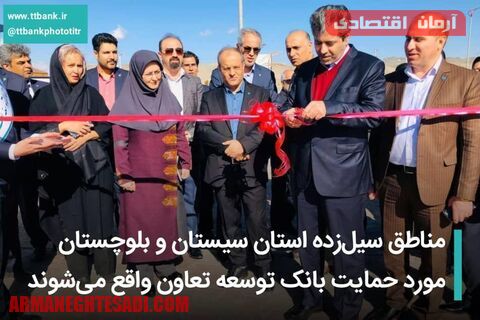 به گزارش پایگاه خبری آرمان اقتصادی به نقل از روابط عمومی بانک توسعه تعاون، حجتاله مهدیان رئیس هیاتمدیره و مدیرعامل بانک توسعه تعاون که به همراه حجت میرزایی معاون اقتصادی وزارتخانه جهت شرکت در جلسه شورای هماهنگی مدیران دستگاههای تابعه وزارت تعاون کار و رفاه اجتماعی و بازدید از مناطق سیلزده سیستان و بلوچستان در این استان حضور یافته است ضمن تبیین اقدامات حمایتی این بانک اظهار داشت: بانک توسعه تعاون در مرحله اول مبلغ ده میلیارد ریال کمک نقدی جهت نیازهای ضروری استان اهدا نموده است.