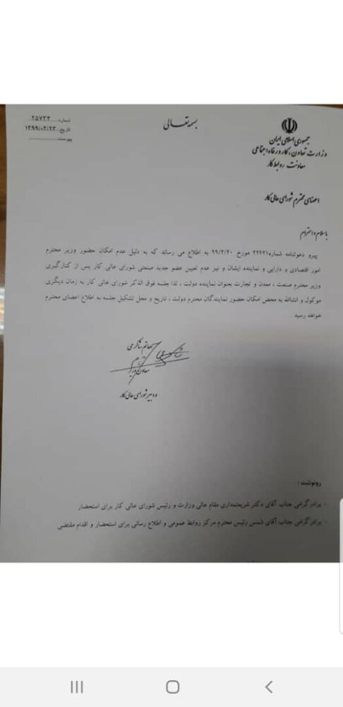 با این حال، به دلیل تغییر وزیر صنعت، معدن و تجارت و عدم معرفی عضو صنعتی شورای عالی کار، جلسه فردا لغو و به تاریخ دیگری موکول شده است.