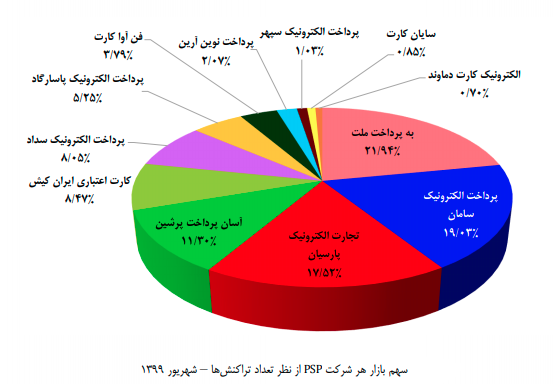 سهم تعدادی و مبلغی هر یک از شرکتهای PSP از بازار تراکنشهای حوزه پرداخت الکترونیک کارت