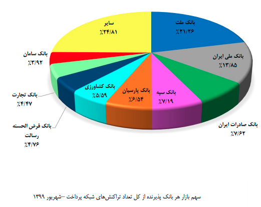 سهم بازار هر یک از بانکهای پذیرنده از تعداد و مبلغ تراکنشهای شبکه پرداخت