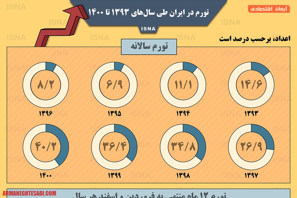 تورم در اقتصاد ایران فراز و فرود زیاد و گاهی چرخه تکراری داشته است. در حدود ۸ سال گذشته گاهی رکورد نرخ را شکسته و گاهی نیز تورم تک رقمی را ثبت کرده است. بر اساس اعلام مرکز آمار روند تورم در ایران از سال ۱۳۹۳ تا کنون رشد داشته، یعنی تورم سالانه از ۱۴/۶ درصد در سال ۱۳۹۳ به ۴۰/۲ در سال ۱۴۰۰ رسیده است.