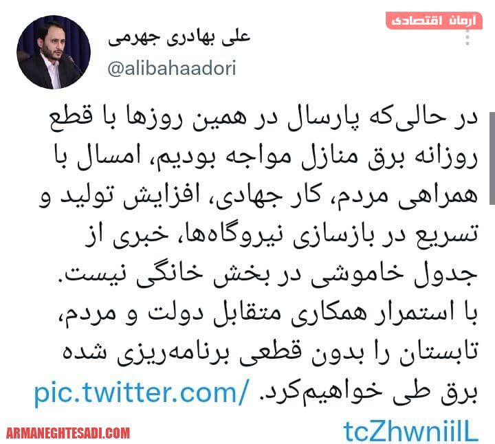 به گزارش آرمان اقتصادی، علی بهادری جهرمی در حساب کاربری خود در توییتر نوشت: