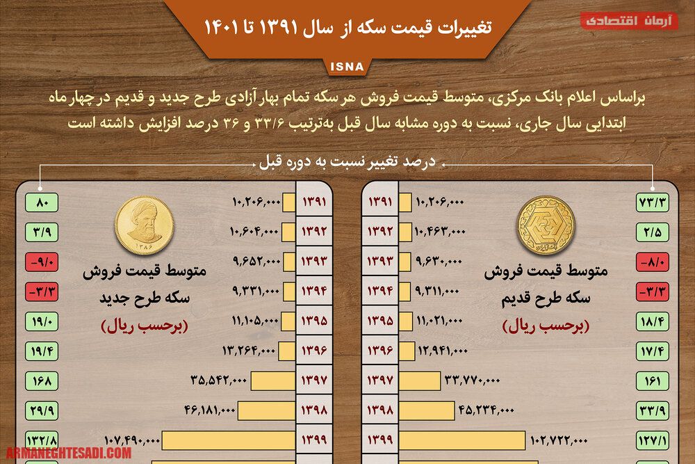 اینفوگرافیک / تغییرات قیمت سکه بین سالهای ۱۳۹۱ تا ۱۴۰۱