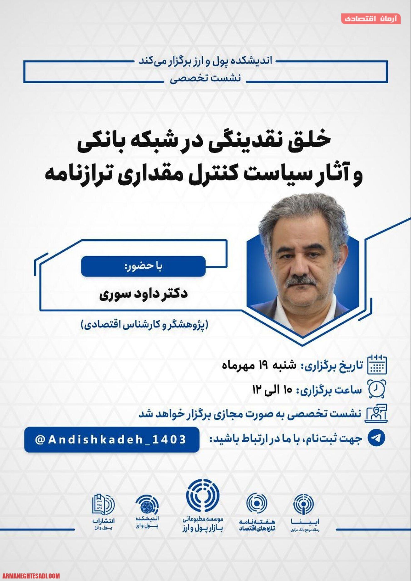 لازم به ذکر است نشست تخصصی «خلق نقدینگی در شبکه بانکی و آثار سیاست کنترل مقداری ترازنامه» شنبه ۱۹ مهرماه، ساعت ۱۰ الی ۱۲ به صورت مجازی و رایگان برگزار خواهد شد.