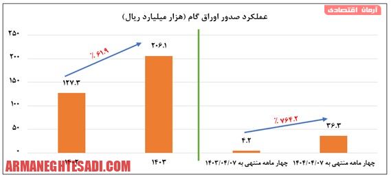 ۸ تیر ۱۴۰۴ مدیر اداره تامین مالی زنجیره تولید بانک مرکزی اعلام کرد: طی سال گذشته ۲۰۶.۱ هزار میلیارد ریال اوراق گام صادر شد که نبست به سال ۱۴۰۲ حدود ۶۱.۹ درصد افزایش نشان می دهد. همچنین از ابتدای سالجاری تاکنون ۳۶.۳ هزار میلیارد ریال اوراق گام به منظور تامین مالی واحدهای…