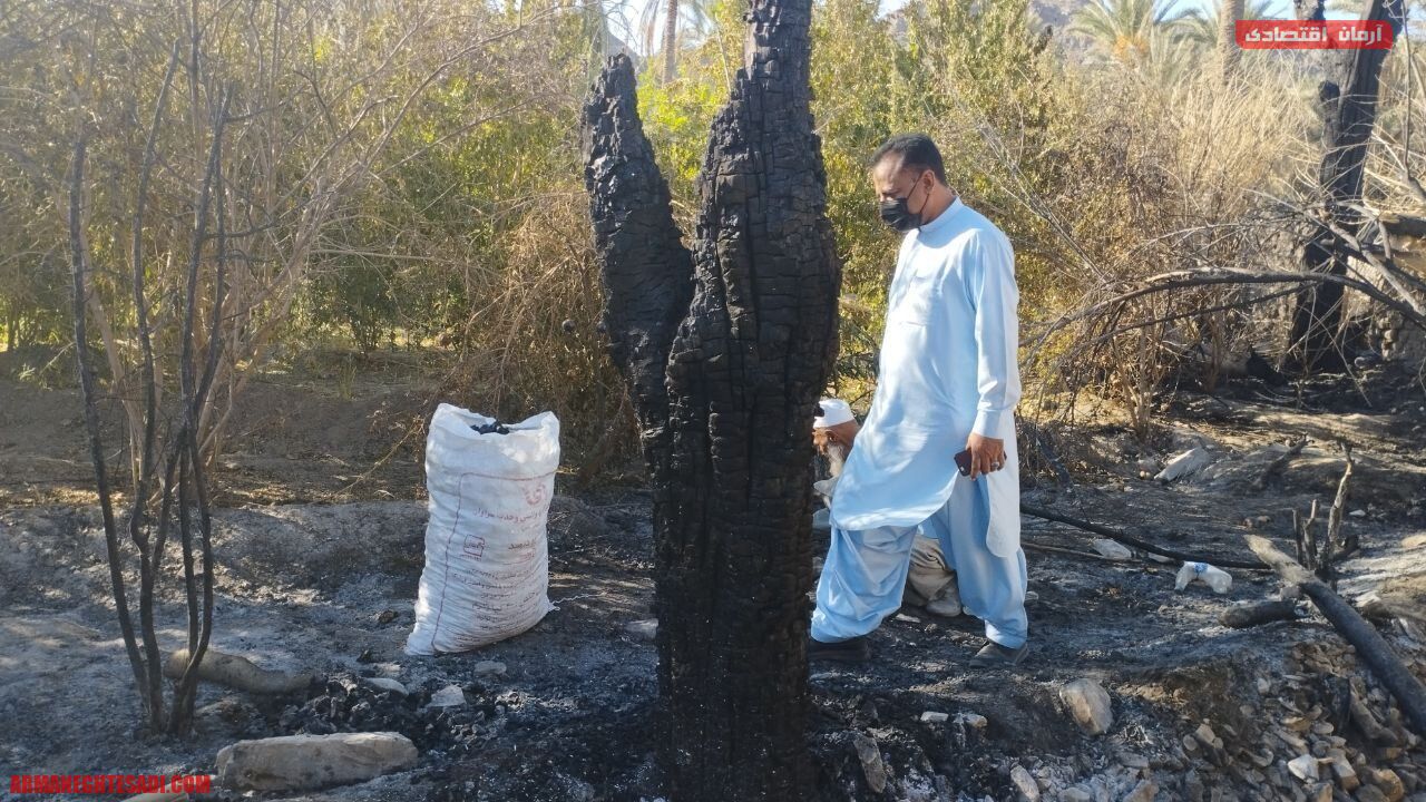 بیش از ۸۰۰ نخل بارور و پاجوش در ناهوک طعمه حریق شد