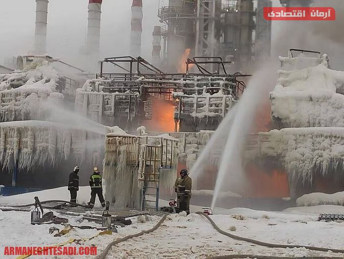 آتش سوزی واحد پالایشگاهی لوک اویل در پی حمله پهپادی