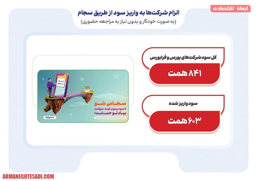 واریز ۶۰۳ هزار میلیارد تومان سود جاری شرکتها از طریق سجام