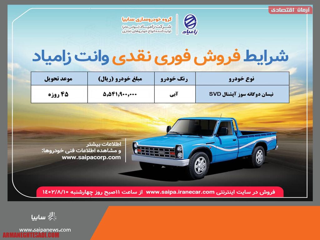 فروش فوری نقدی وانت نیسان دوگانهسوز آپشنال از امروز